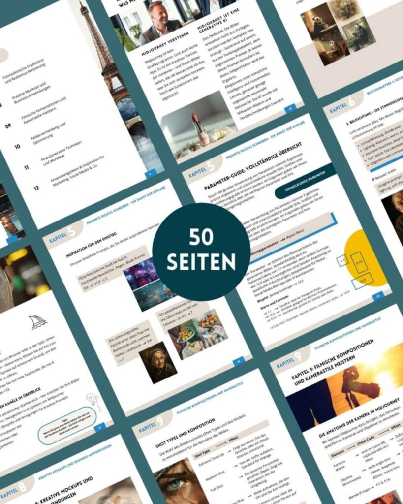 - 50 Seiten strukturierte Midjourney Anleitung Deutsch